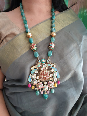 Styling: These are the perfect accessories to accentuate the elegance of your traditional outfit, furthermore, adding a perfect pop of color and edginess. The beautiful elements of the necklace go well with the saree or any Western dress. A statement necklace is enough to make the entire outfit look amazing. It looks better with a solid color outfit or pastel outfit.