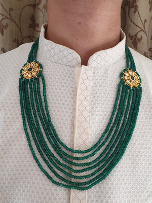 Emerald Green Stone Kundan Brooch Seven Layered Indian Groom Necklace