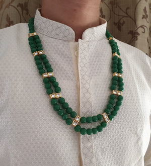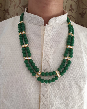 Emerald Green Stone With Kundan Wedding Groom Necklace