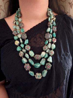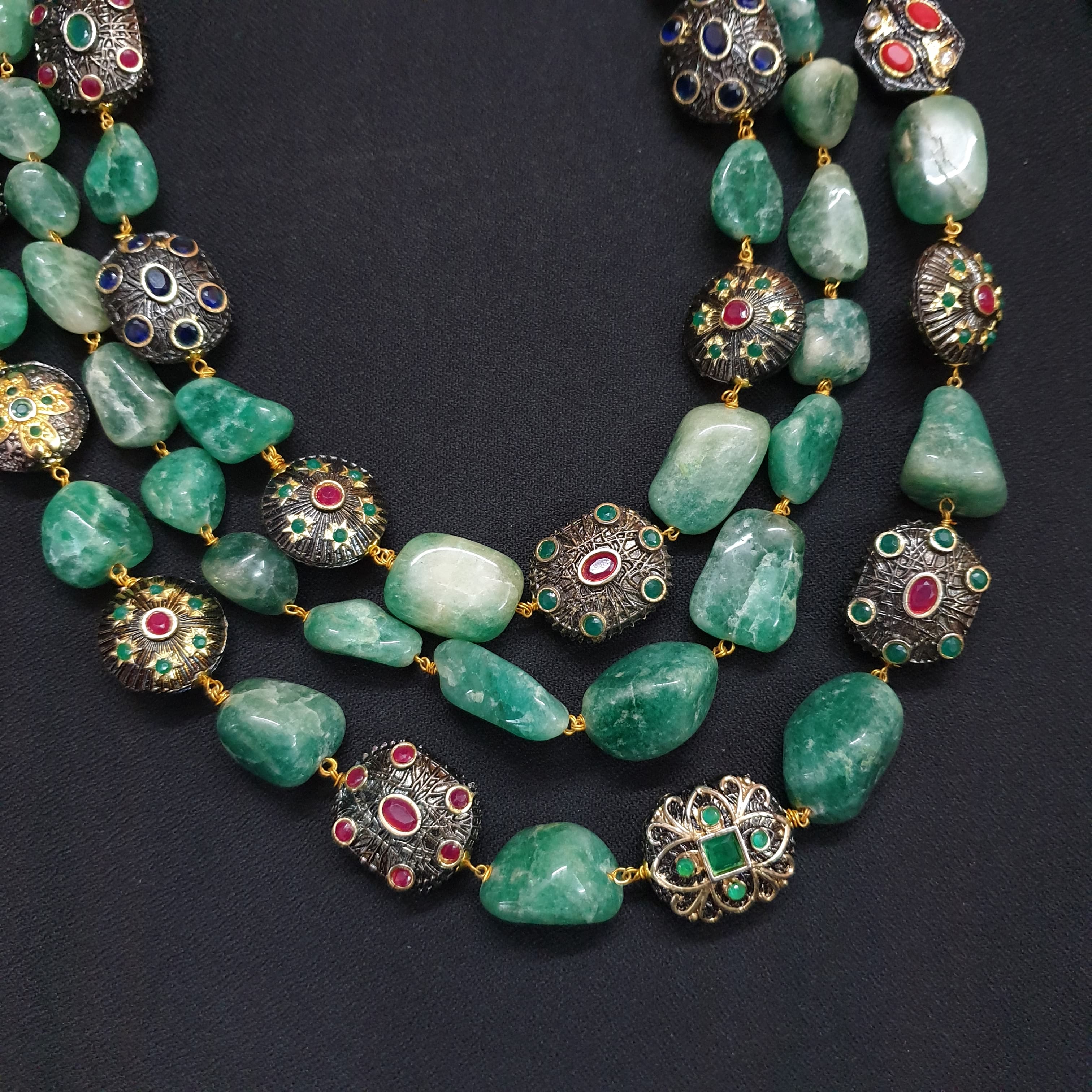 Emerald Semi Precious Stone Anitque Beaded Necklace