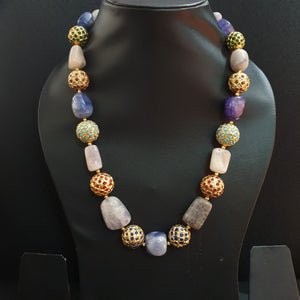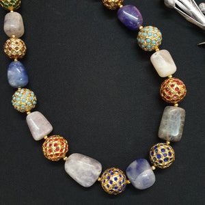 An elegant blue stone beaded jadau necklace with the most stunning festoon. The perfect accessory for your occasion. This necklace is handcrafted with love
