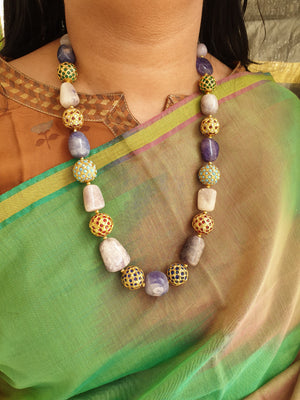 Styling: These are the perfect accessories to accentuate the elegance of your traditional outfit, furthermore, adding a perfect pop of color and edginess. The beautiful elements of the necklace go well with the saree or any Western dress. A statement necklace is enough to make the entire outfit look amazing. It looks better with a solid color outfit or pastel outfit.
