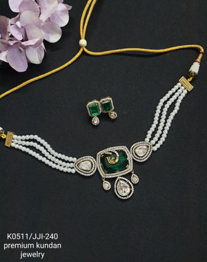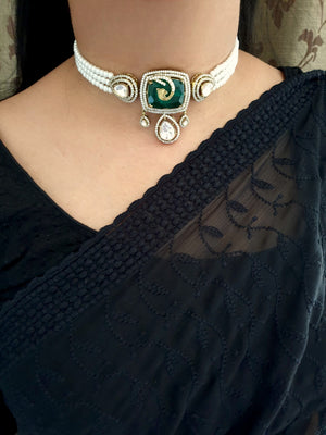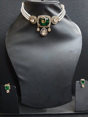 Emerald Stone Kundan Choker Necklace Set