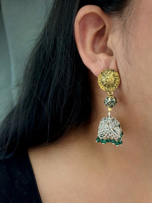 Zircon Stone Dual Tone Oxidised Jhumki Earrings