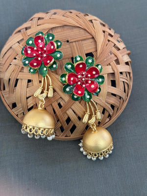 Elegant handpainted jhumki earrings with the most stunning festoon. The perfect accessory for your occasion. These earrings are handcrafted with love