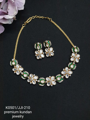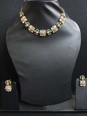 Elevate your style with this exquisite Designer Kundan polki Necklace set. Its intricate craftsmanship and regal charm make it the perfect statement piece