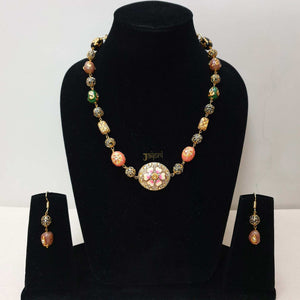 Floral Multicolor Beads Stone Necklace With Earrings