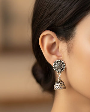 An elegant floral oxidized earrings with the most stunning festoon. The perfect accessory for your occasion. This earrings is handcrafted with love