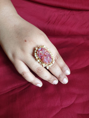 Pink Stone Rainbow Shine Stone Adjustable Ring