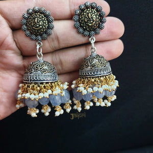 Ganesha Dual Tone Oxidised Jhumki Earrings