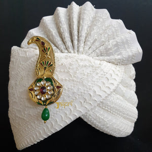 Gold Finish Kundan Polki Green Meenakari Kalingi for Groom