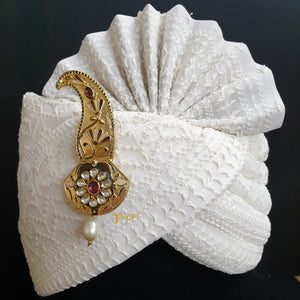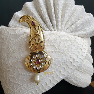 Gold Finish Kundan Polki Studded Meenakari Kalingi for Groom