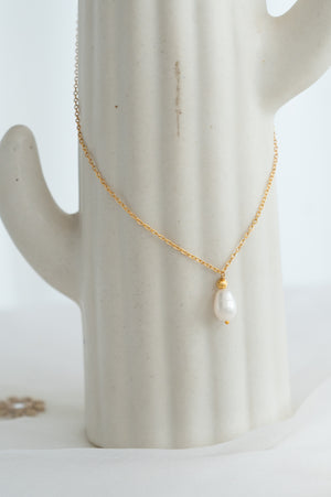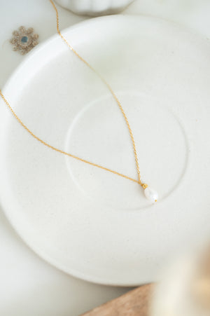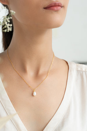Gold Pearl Drop Pendant Minimal Necklace for Women