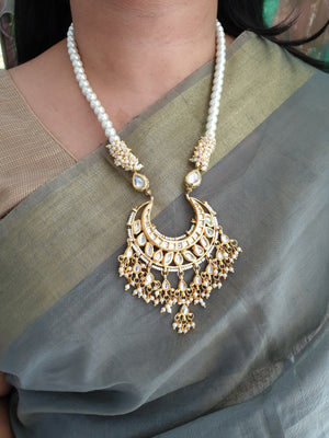 An elegant Kundan pendant set with earrings with the most stunning festoon. The perfect accessory for your occasion. This necklace is handcrafted with love