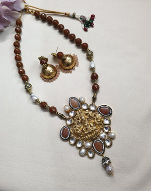 Elevate your style with our exquisite Gold Plated Temple Jewelry Set, complete with coordinating earrings. This set embodies traditional elegance and intricate craftsmanship for a timeless and regal look