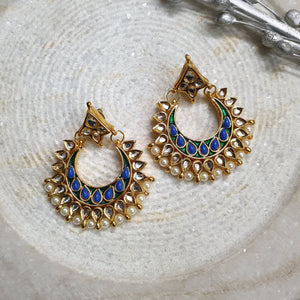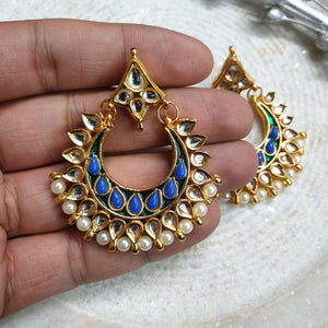 Blue Stone Kundan Chandbali Earrings