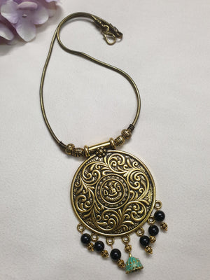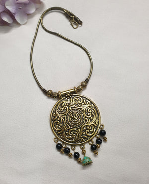 Round Antique Gold Chain Necklace With Black Beads