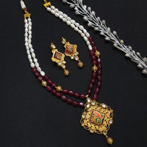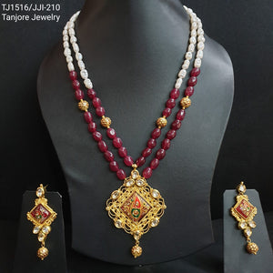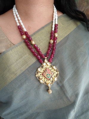 Elevate your style with our Gold Tone Handmade Tanjore Work Pendant Set. This exquisite set beautifully embodies traditional artistry and craftsmanship, adding a touch of elegance to any outfit