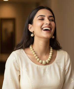 Gold Tone Jadau Pearl Necklace