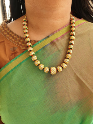 An elegant designer Jadau bead necklace with the most stunning festoon. The perfect accessory for your occasion. This necklace is handcrafted with love