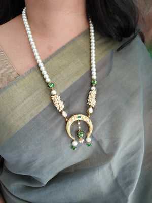 An elegant Kundan pendant set with earrings with the most stunning festoon. The perfect accessory for your occasion. This necklace is handcrafted with love