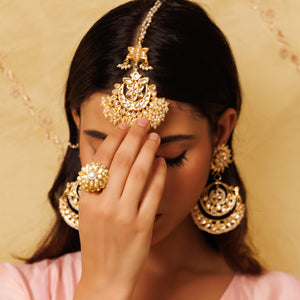 An elegant Kundan earring with maangtikka is the most stunning festoon. The perfect accessory for your occasion. These earrings are handcrafted with love