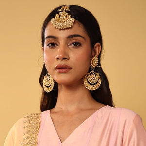 Gold Tone Kundan Stone Chandbali Earrings With Maangtikka