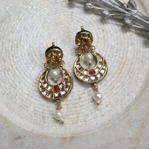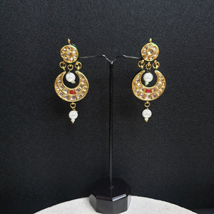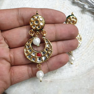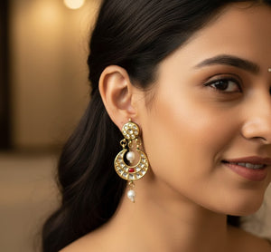 Gold Tone Red Stone Kundan Chandbali Earrings