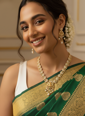 Celebrate timeless tradition with our Premium South Indian Temple Jewelry Necklace Set, inspired by classical Lakshmi temple motifs