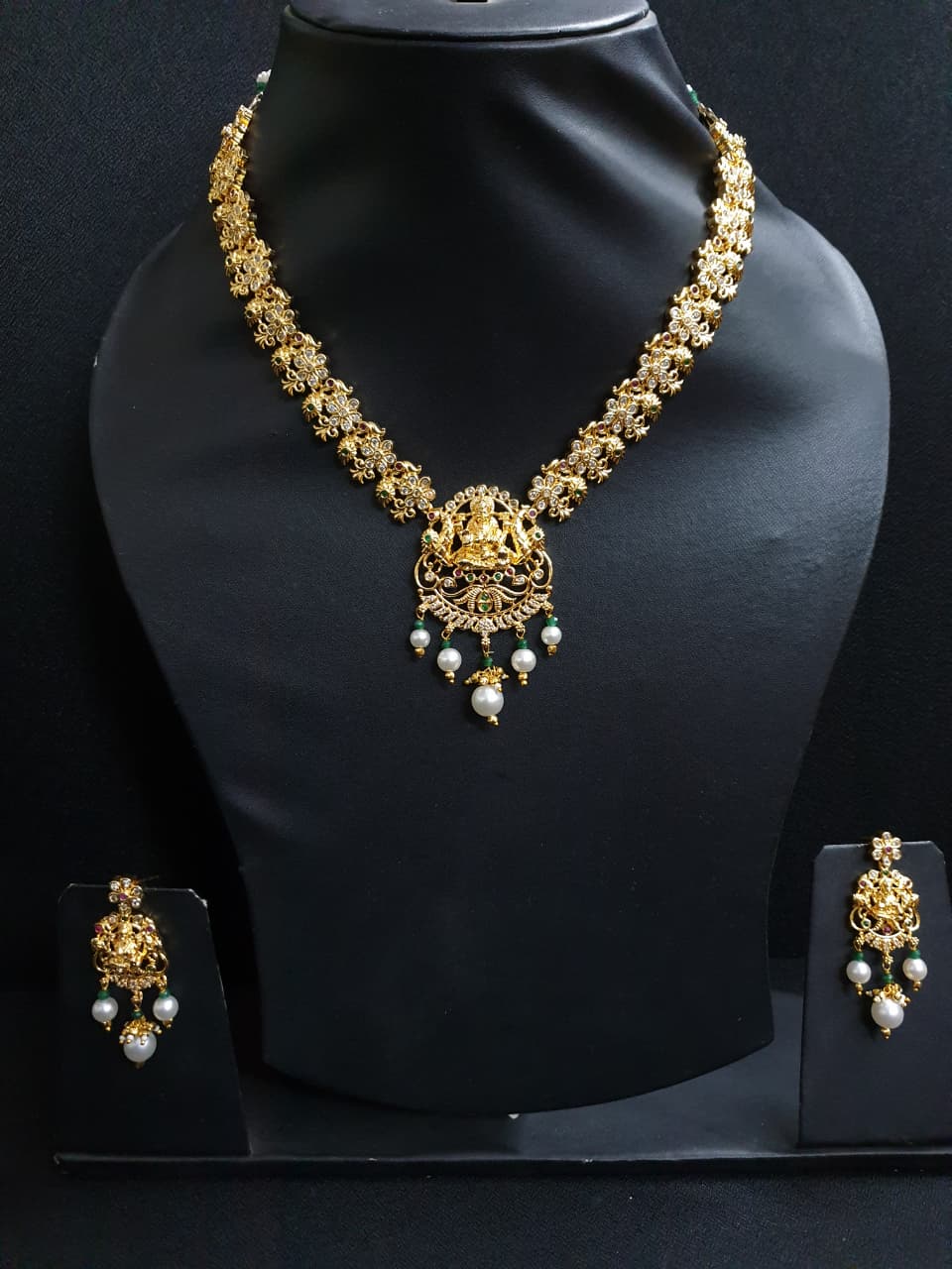Gold Tone South Indian Temple Jewelry Necklace Set
