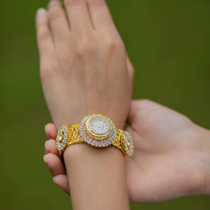 Material: 22k Gold Plated Silver Alloy, Jadau Beads, Quartz Watch