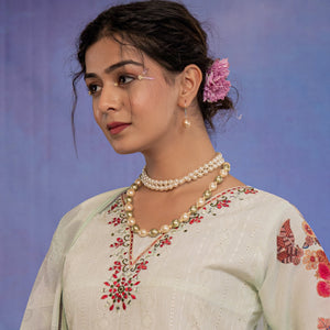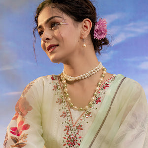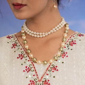 Golden and Green Shell Pearl And Double Layer Pearl Choker With Earrings