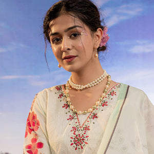 A dainty shell pearl bead necklace and double layer choker with the most stunning festoon. The perfect accessory for your occasion. This necklace is handcrafted with love