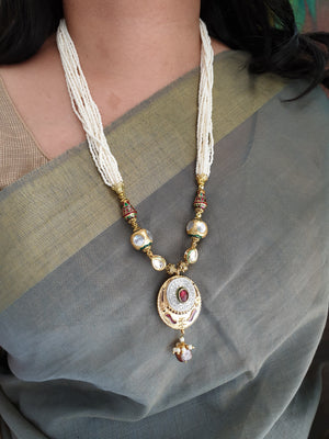 An elegant seed beads stone meenakari pendant with the most stunning festoon. The perfect accessory for your occasion. This necklace is handcrafted with love