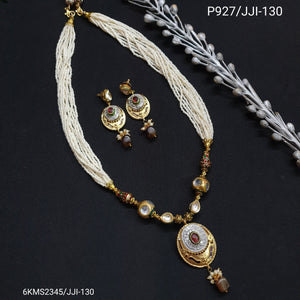 Golden Seed Bead Meenakari Pendant Set With Earrings