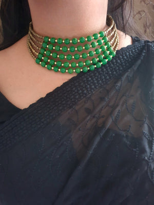 An elegant green beaded adjustable choker necklace with the most stunning festoon. The perfect accessory for your occasion. This necklace is handcrafted with love