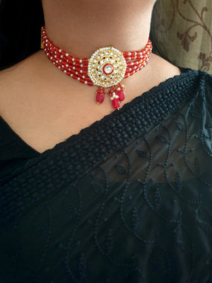 An elegant red beaded choker necklace with earrings with the most stunning festoon. The perfect accessory for your occasion. This necklace is handcrafted with love