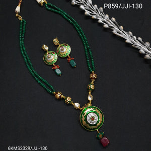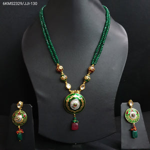 Green Beaded Round Meenakari Pendant Set With Earrings