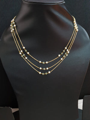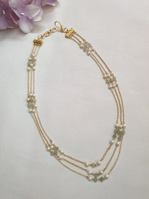 An elegant green beaded small pearl chain necklace with the most stunning festoon. The perfect accessory for your occasion. This necklace is handcrafted with love
