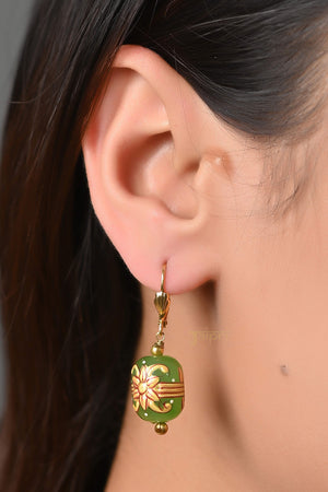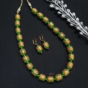 Green Tanjore Meenakari Beaded Necklace With Earrings