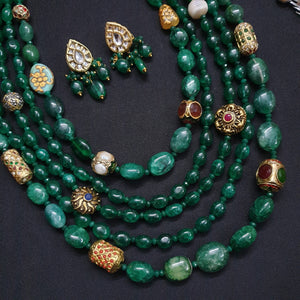 Green Cocktail Jewellery Necklace Set With Anitque Beads