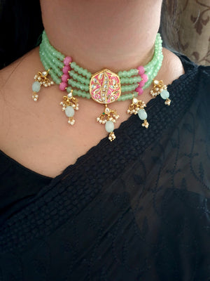 Mint Green Kundan Meenakari Choker Set With Earrings