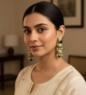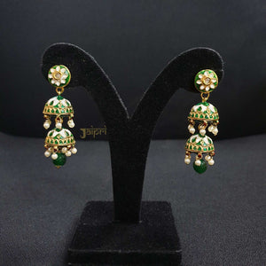 Green Floral Meenakari Jhumki Earrings