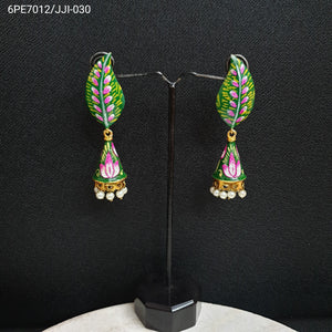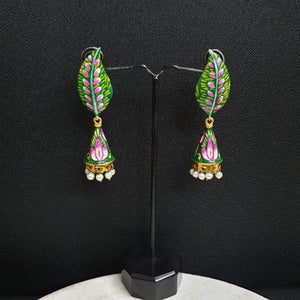 Elegant handpainted green jhumki earrings with the most stunning festoon. The perfect accessory for your occasion. These earrings are handcrafted with love