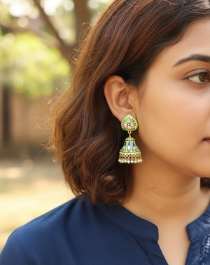 Green Handpainted Jhumki Earrings