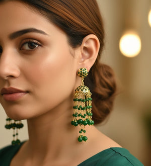 Styling: These are the perfect accessories to accentuate the elegance of your traditional outfit, furthermore, adding a perfect pop of color and edginess. The beautiful elements of the earrings go well with the saree or any Western dress. A statement earring is enough to make the entire outfit look amazing. It looks better with a solid color outfit or pastel outfit.