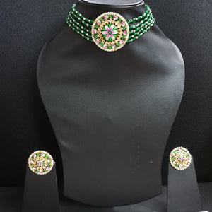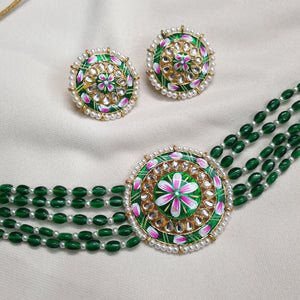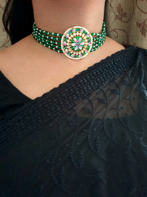An elegant green beaded choker necklace with earrings with the most stunning festoon. The perfect accessory for your occasion. This necklace is handcrafted with love