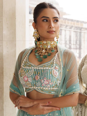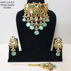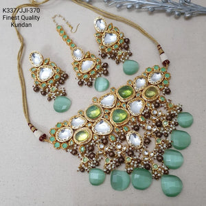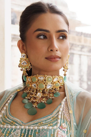 Green Kundan Polki Bridal Necklace Set With Earrings and Maang Tikka