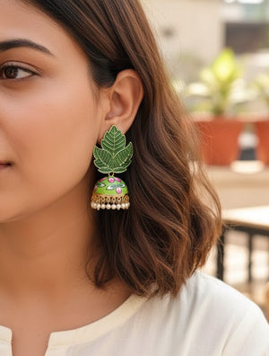 Elegant handpainted jhumki earrings with the most stunning festoon. The perfect accessory for your occasion. These earrings are handcrafted with love