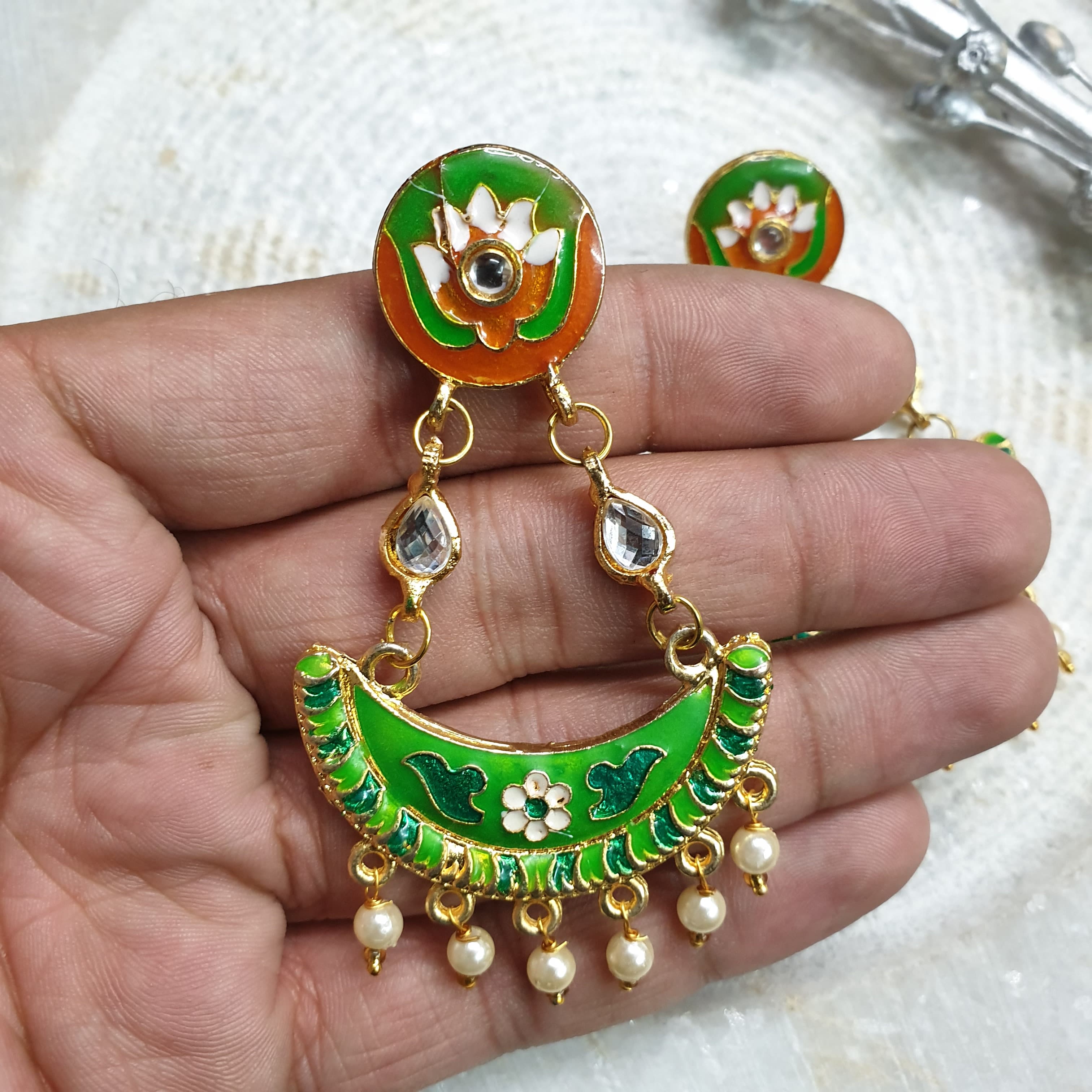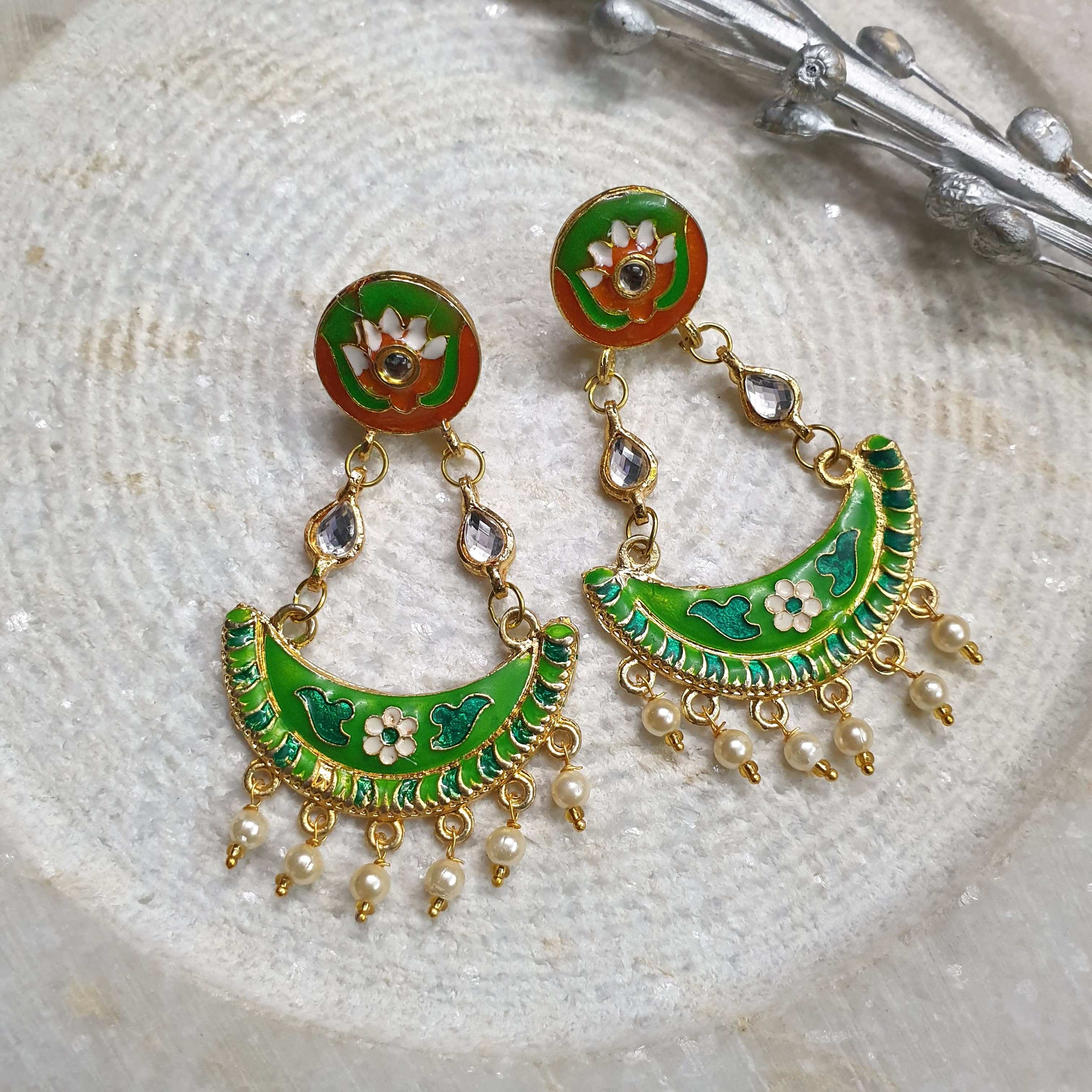Styling: These are the perfect accessories to accentuate the elegance of your traditional outfit, furthermore, adding a perfect pop of color and edginess. The beautiful elements of the earrings go well with the saree or any Western dress. A statement earring is enough to make the entire outfit look amazing. It looks better with a solid color outfit or pastel outfit.